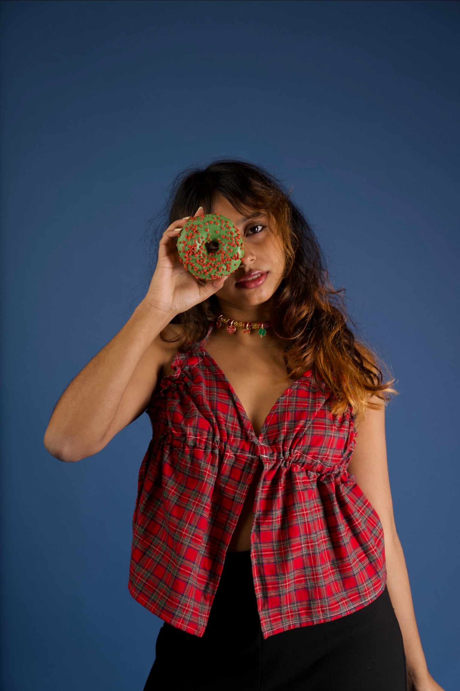 Dieses Neckholder-Top bringt Farbe, Leichtigkeit und Persönlichkeit in deinen Look. Gefertigt aus 100 % Baumwolle, fühlt es sich angenehm weich auf der Haut an und ist perfekt für warme Tage. Der lockere Schnitt sorgt für eine entspannte Silhouette, während das karierte Design dem Top einen verspielten, zeitlosen Charakter verleiht.